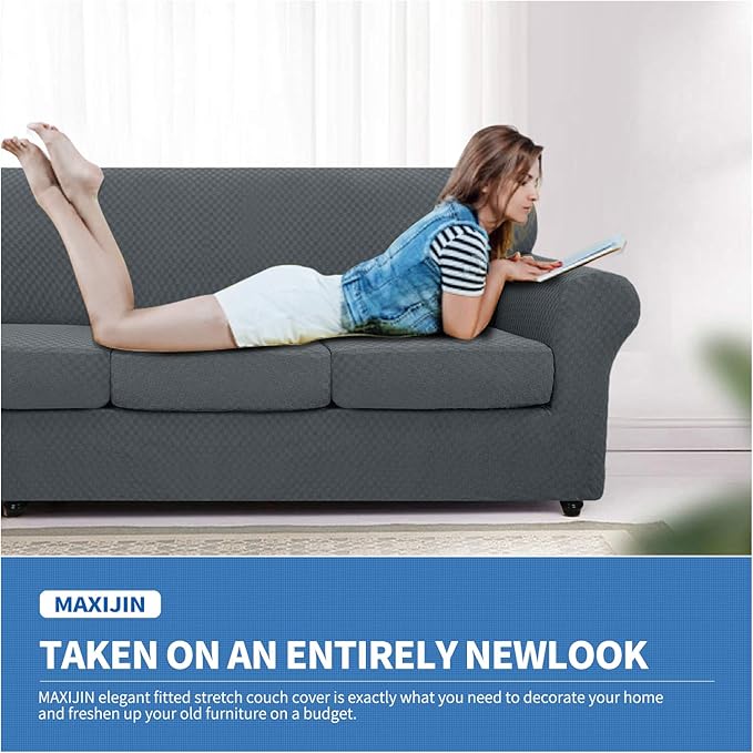 - HIGH STRETCHY - MAXIJIN fitted sofa slipcovers are made of high quality 85% polyester and 15% spandex fabric, which is soft in texture, comfortable in feeling and with good breathability. Due to its high stretchable feature, our magic couch cover is more flexible to be applied to various couches,such as t-cushion couches, box cushion couches, high back couches, small and extra large leather couches. Improved thick cloth is more durable and wear resistant
