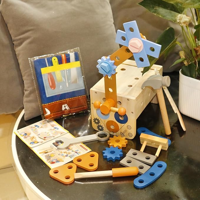 - STEM Montessori Toys for 2+ Year Old: With multiple pretend toy tools, toddlers can play the role of carpenters or engineers more safely. Using the hammer for pounding and prying nails, a mini wooden saw for sawing, a screwdriver for twisting screws, a wrench for Tightening or loosening nuts. Children can learn how to use tools during play, which is beneficial for exercising their fine motor skills, hand-eye coordination skills, and promoting brain development