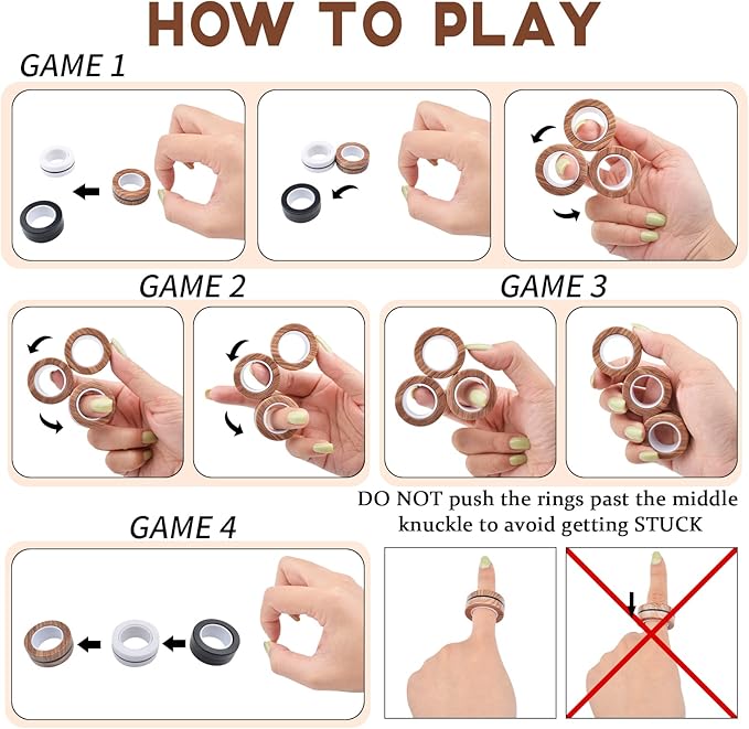 • EASY TO PLAY: Whether playing alone or with multiple people, showing off your cool skills, finger magnetic rings will definitely make you the focus of the audience! You can play games with friends, such as track and field, hockey, and billiards
