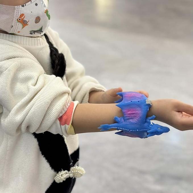 - 2 in 4 Slap Bracelet Toy: This toy is not only traditional slap bracelet toys but also dinosaur model toys.Skin-friendly silicone material can protect your hand dinosaur head and tail can be stretched more interesting than traditional Slap Bracelet toys