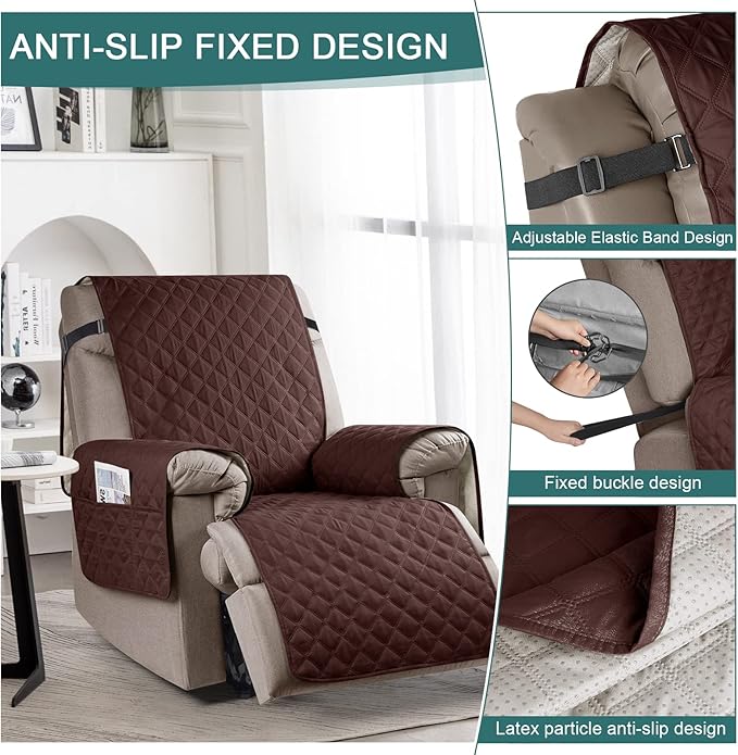 Ruaozz 100% Waterproof Recliner Chair Cover Non-Slip Oversized Reclining Cover for Large Recliner Chair Washable Chair Seat Cover with Elastic Straps for Kids, Dogs, Pets (Coffee, 28'')