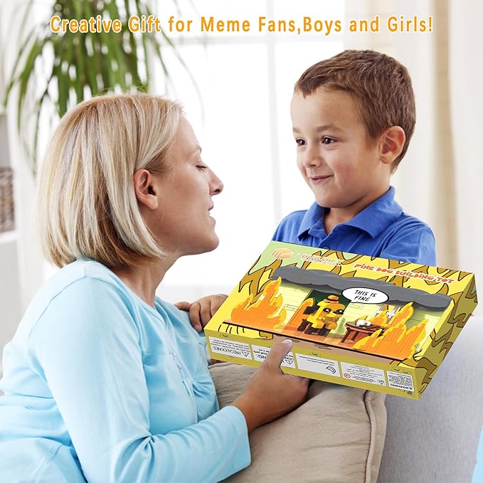 This is Fine Dog Building Blocks, Funny Internet Meme Dog Compatible with Lego Dog,Puppy Animal Figure Calm in Fire, for White Elephant Gift, Birthday Gift for Kids Boys Girls (403 Pcs)