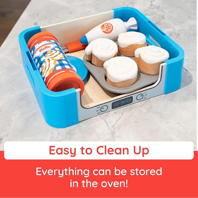 - ENCOURAGES IMAGINATIVE PLAY: This kids play food helps inspire kids to engage in creative role play, acting with toy kitchen food and kitchen playset accessories like the cinnamon roll pretend-play set in a storage crate that's also an "oven".