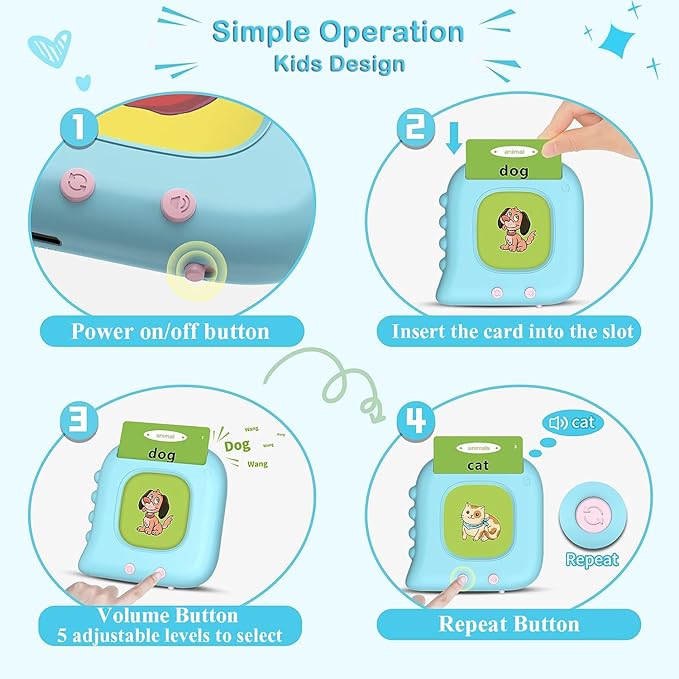 - ♫Upgraded the Flash Cards: Our toddler toys the 2nd generation has been upgraded the speech more clearly and native English,the card is thicker.The operation is easier to use,Turn on the switch, put the card into the card slot, the card reader will pronounce the word and animal's sounds. Realistic animal and car simulation sounds is good for inspiring children's phonological abilities.