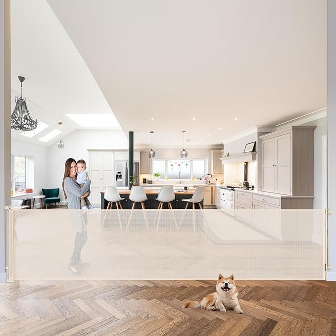 120 Inch Retractable Baby Gates Extra Wide Baby Gate Retractable Dog Gates for The House Extra Wide Dog Gate Extra Long Baby Gates for Large Opening Extra Large Pet Gate Child Gate for Doorway (Beige)