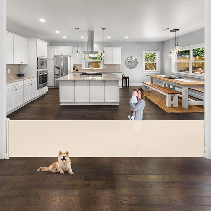 - [Perfect Fit Indoor and Outdoor] retractable dog gate can be installed at bottom of stairways, doorways, hallways, deck, porch indoor and outdoor.