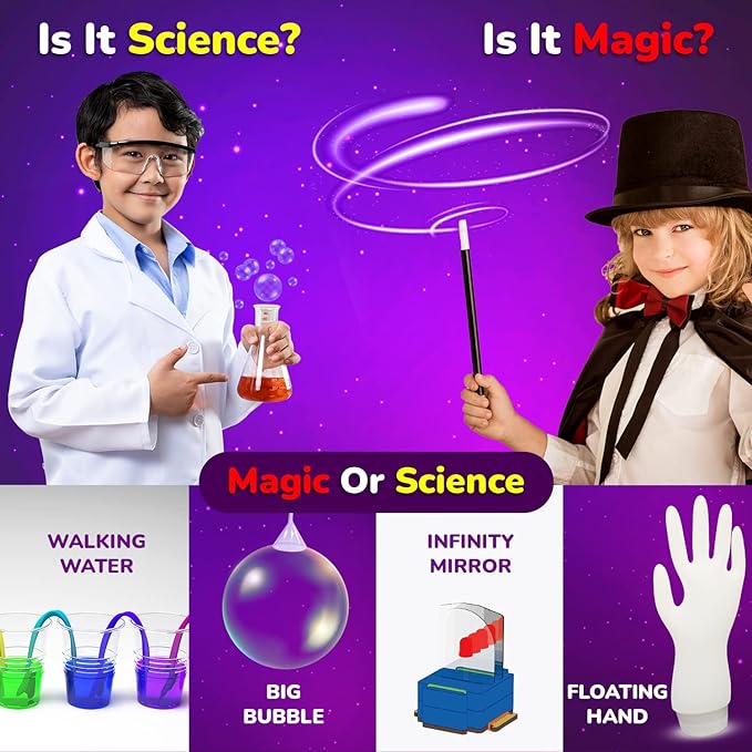 - 50+ Magical Experiments: 100+ hours of Engagement with step-by-step instruction manuals for kids to perform experiments at home, have fun and learn fundamental chemistry and physics concepts