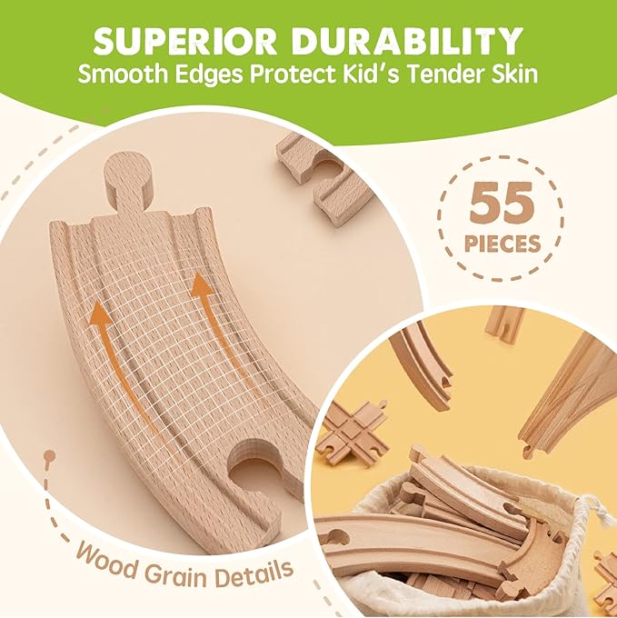 - Quality and Durability: the wooden train tracks are made from high-quality wood material, this train set is sturdy and built to last. It has been finely crafted and polished for a smooth finish.