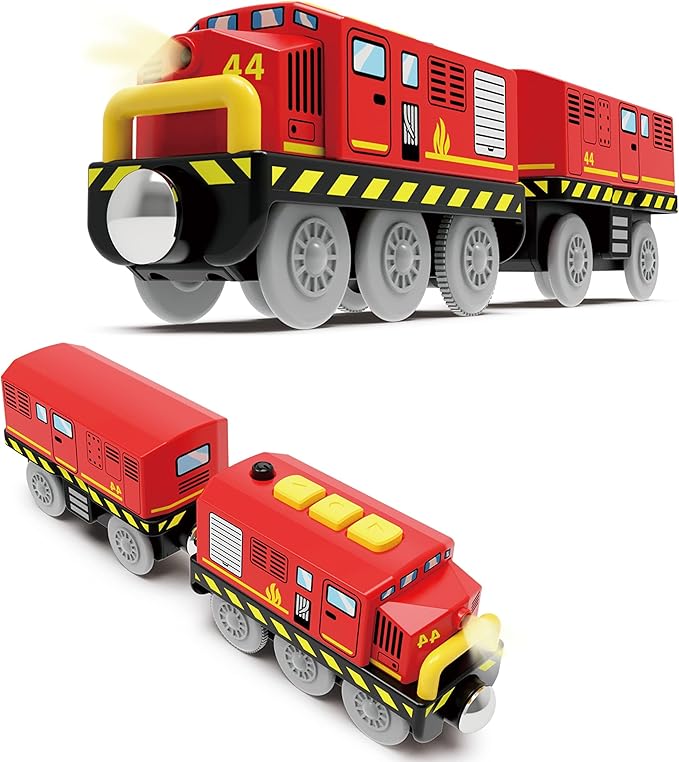 Train Toys Battery Operated Locomotive Train for Wooden Track, Motorized Train for Toddlers with Magnetic Connection, Compatible with Thomas, Brio, Chuggington, Melissa and Doug