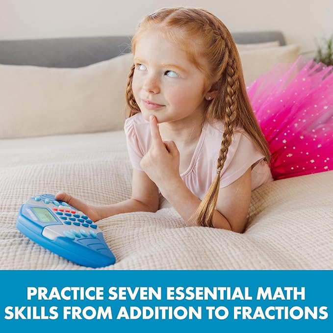 - WHAT’S INCLUDED: MathShark is a hand-held electronic game quizzing kids on addition, subtraction, multiplication, division, fractions, decimals, and percentages, with eight difficulty levels for each skill. LCD screen displays problems both horizontally and vertically, just like at school. MathShark can also be used as a fully functional calculator. Requires 2 AAA batteries (not included). Each skill level includes timed tests, motivating kids to better their scores