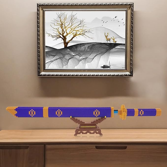- ⚔️【Stable Sword Stand】The anime sword stand consists of 392 blocks to firmly support the sword and scabbard. The combination of the sword and scabbard perfectly and vividly restores all the detailed elements of the Yamato sword. They can become the most attractive decoration and collection.