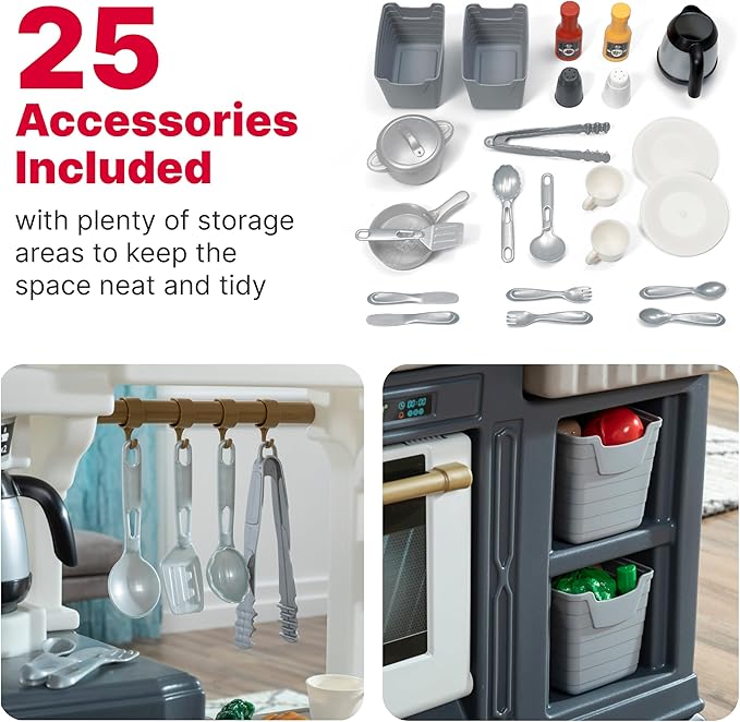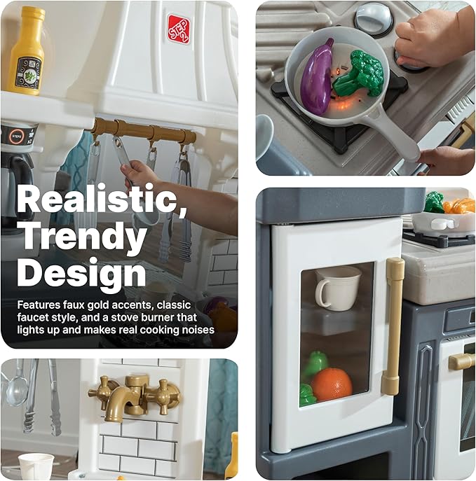 Step2 Gilded Gourmet Kids Kitchen Playset, Indoor/Outdoor Kitchenette, Interactive Play with Lights and Sounds, Made of Durable Plastic, Includes 20 Piece Toy Accessories, for Toddlers 2+ Years Old