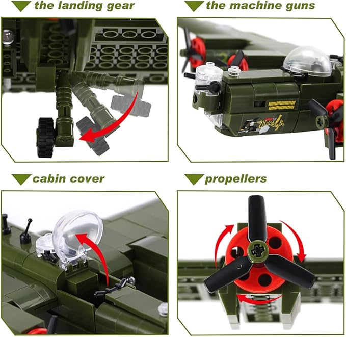 - The movable parts of the model can be operated manually, such as the landing gear, the machine guns, cabin cover and propellers, it also include additional accessories like a pilot figures.