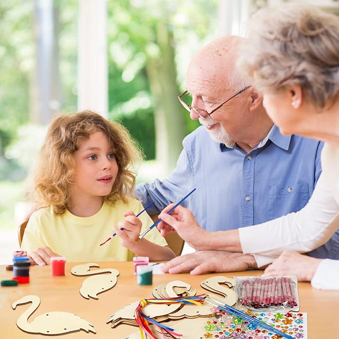 - Wind Chime Kit:the DIY wooden wind chimes kit for kids include 12x unfinished wooden flamingos(3 designs,each of 4),24x pink wind chime tubes,2x paiting brushes(there no paint included),12x 1M silver wire,12 x color rope,1x rhinestone stickers.Sufficient quantity and various styles to meet your decorative needs,kids can make their own wind chime kit.