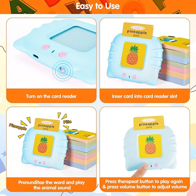 - Portable and Practical: Compact and lightweight design; no WIFI needed; pre-recorded English and Spanish words; suitable for on-the-go learning; easy for kids to use independently