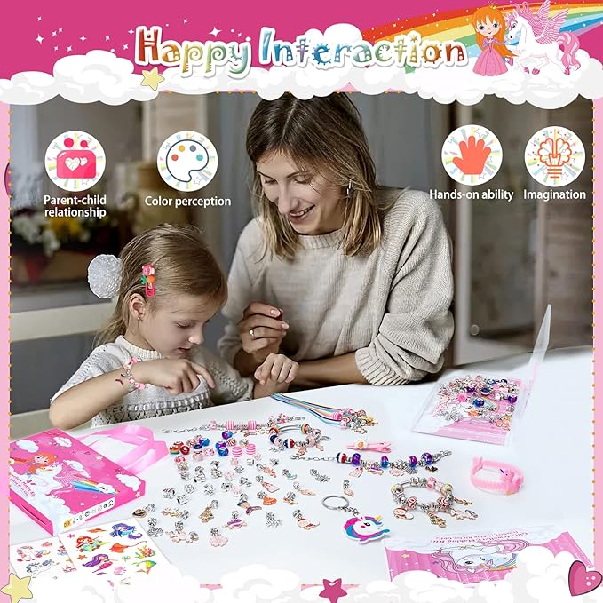 - Easy to match, install and use: Charm Bracelet Making Kit comes with easy-to-follow instructions manual, making it simple and convenient for girls to create their bracelets. At the same time, our Charms Bracelet Kit also comes with two hair clips and two stickers, which will provide more fun for girls. Unicorn Gifts for Teen Girls. Jewelry Making Supplies Beads.