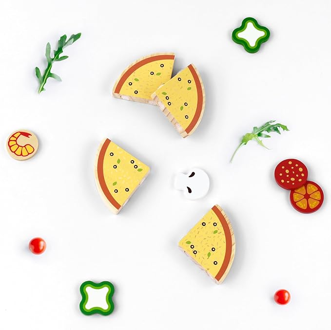 • Quality & Safety: Made with premium wood and non-toxic water-based paint, this pizza toy set meets ASTM F963 toy safety standards, ensuring safe playtime for your little ones