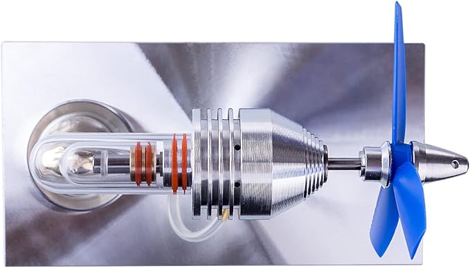 - Aircraft Propeller Engine: This is an excellent Stirling engine model. Propeller blades are used instead of flywheels, more novel. It will be an amazing technology toy on your desktop