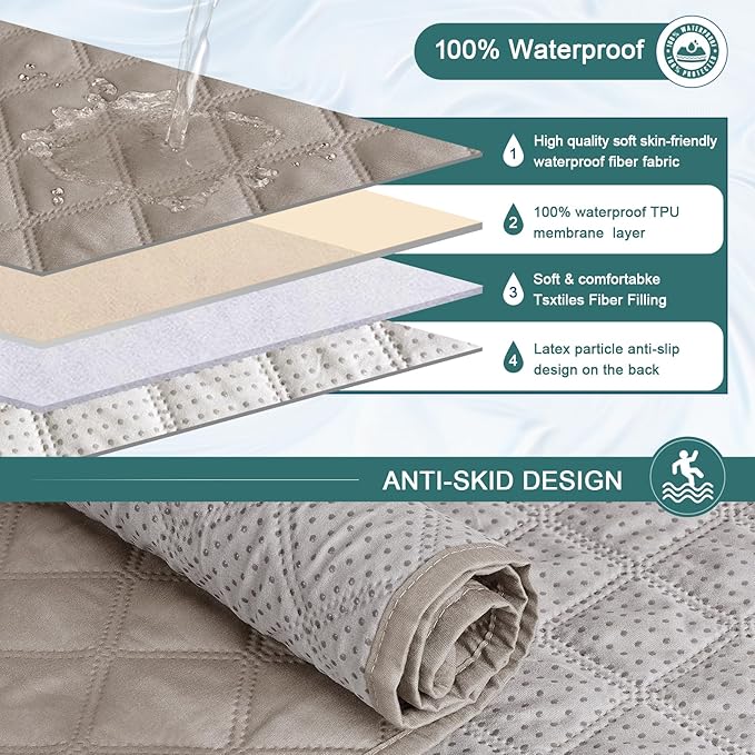 - WATERPROOF MATERIAL: Made of choiceness material, quilted from 4 layers fabric. The outer layer is made of waterproof polyester and the inner-layer is filled with thick fabric to make it more soft. It would be a great choice for homes with kids and pets