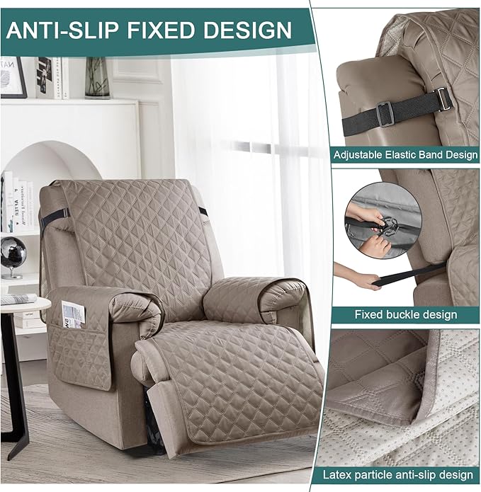 - STAY IN PLACE: Solid round colloid design on the back of our recliner cover to reduce slipping; Elastic straps on the top secure the back of the sofa; Elastic band on the seat with round buckles enhance slip resistance