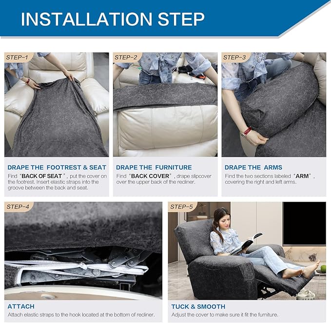 - Non slip: The stretchy elastic band of leather recliner cover make oversize recliner chair cover that stay in place. And smooth fabric make you no need to worry messy in daily.
