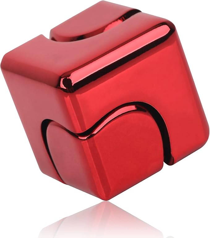 QLKUNLA Fidget Cube Spinner Anti-Anxiety Focusing Fidget Toys EDC Fidgets Spinner 4-in-1 Toy Metallic Focus Toy Cube Finger Top Desktop ADHD Stress Relieve Toys for Kids and Adults (Red)
