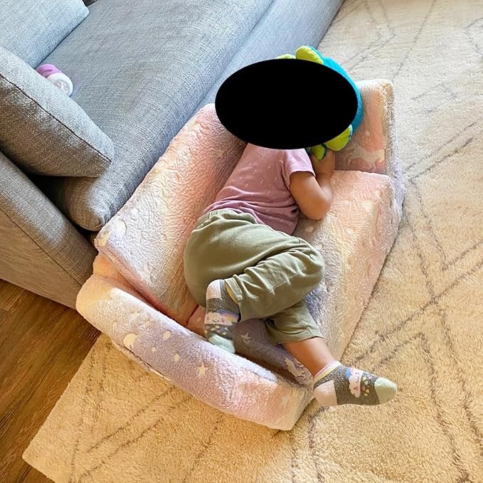 - 【Foldable Kids Sofa】: Children's sofa offer the flexibility to adapt to different situations. With a simple fold, they can effortlessly convert between a traditional sofa and a lounger, accommodating various seating preferences or transforming playtime into relaxation time.
