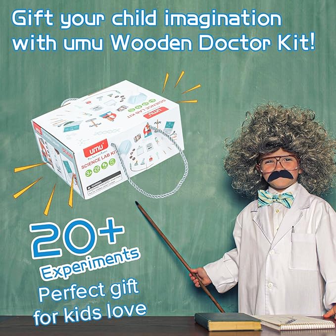 umu Kids Science Experiment Kit,Doctor Dress Up for Kids Ages 3-5 Scientist Costume Dress Up and Role Play Toys Gift for Boys Girls Kids Age 5-8 Christmas Birthday Party Pretend Glasses Toddler Scrubs