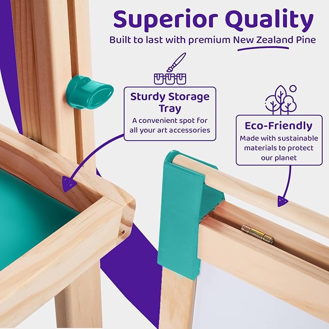 - π π¦π§π¨π₯ππ¬ & πππππ-π¦πππ πππ¦πππ‘ πͺππ§π πππ¦π¬ πππππ‘π¨π£: Our Kids' Art Easel is constructed with sturdy, child-friendly materials that features smooth edges and a stable base, ensuring a safe and secure playtime. With surfaces that wipe clean easily, you can enjoy hassle-free clean-up after every creative session, allowing for more fun and less mess!
