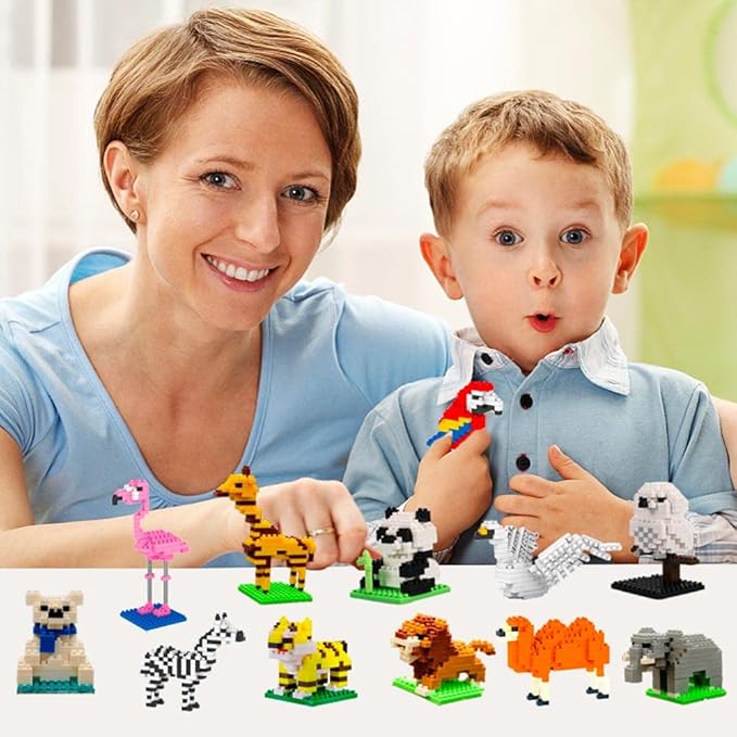 - Cute Forest Animals: This set of building blocks contains 12 different forest animals, such as giraffes, tigers, lions, elephants, zebras, camels, red-crowned cranes, parrots, swans, owls, pandas, white bears, etc., all with exquisite details and cute expressions, making children unable to put them down.