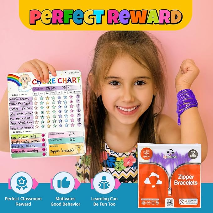 - How many fidget toys come in the pack? The pack includes a total of 12 UpBrands purple zipper bracelets, each measuring 7 inches. These vibrant, single-color bracelets are perfect for sharing, group activities, or ensuring you always have a fun and practical sensory toy on hand. Their striking purple color and engaging design make them ideal for kids and adults alike, providing a playful and enjoyable sensory experience for everyone.