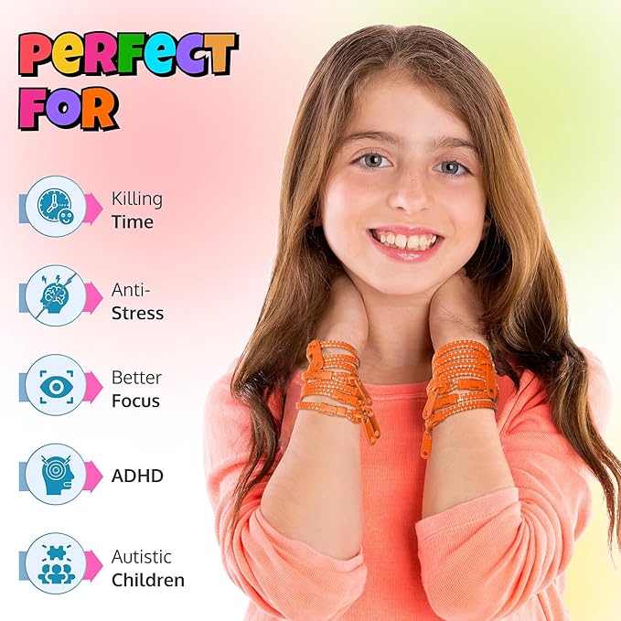 - Orange Quality Assurance: Our kid-friendly orange zipper bracelets are designed with safety and durability in mind. As unique fidget bracelets for anxiety, they provide a secure fidgeting outlet while celebrating the vibrancy of orange.