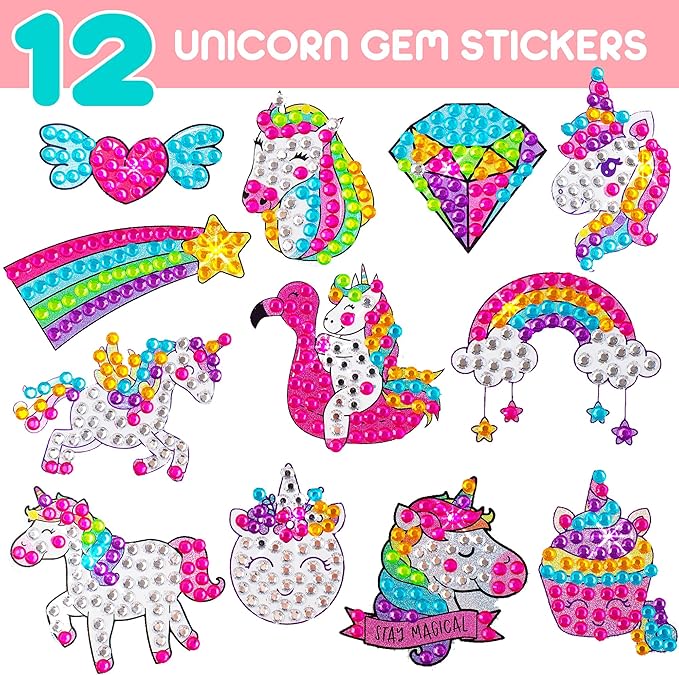 - π π¨π‘πππ’π₯π‘-π§πππ ππ ππππ π’π‘π ππ₯π§ πππ§π¦: Blue Squid's Unicorn-themed Diamond Painting Art Kit is the perfect arts and crafts activity for kids and beginners! With easy-to-handle gems, your child can create 12 colorful gem art stickers, 2 glittering keychains, and 2 sparkly suncatchers. Also available in Mermaid, Summer, and Under The Sea editions, this kit offers a fun and enjoyable way for kids to explore their creativity while making dazzling accessories.