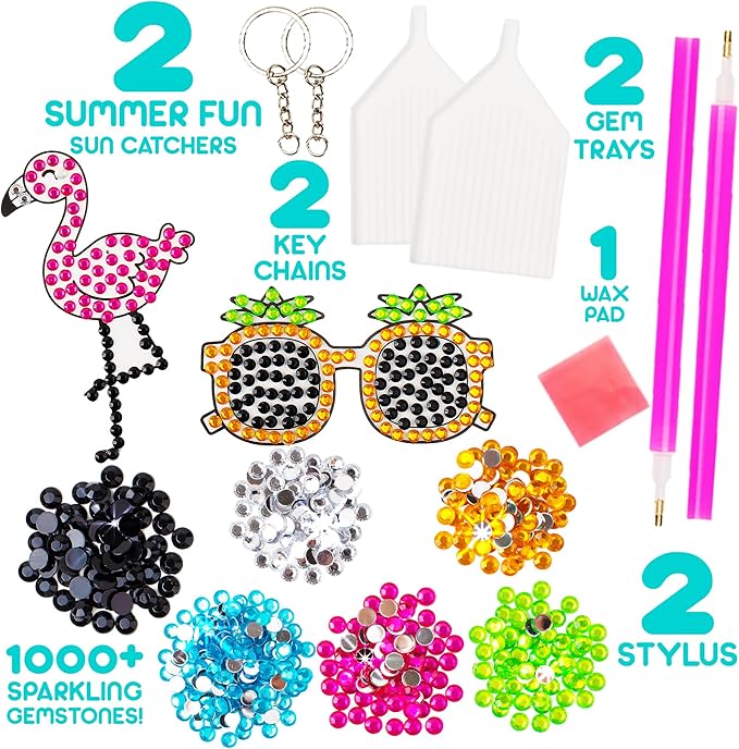 - π π¦π¨π π ππ₯-π§πππ ππ ππππ π’π‘π ππ₯π§ πππ§π¦: Blue Squid's Summer-themed Diamond Painting Art Kit is the perfect arts and crafts activity for kids and beginners! With easy-to-handle gems, your child can create 12 colorful gem art stickers, 2 glittering keychains, and 2 sparkly suncatchers. Also available in Mermaid, Unicorn, and Under The Sea editions, this kit offers a fun and enjoyable way for kids to explore their creativity while making dazzling accessories.
