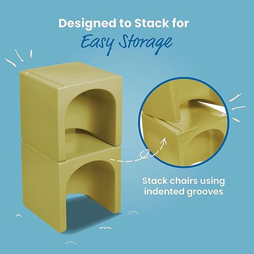 - Children's Chair: Stack chair keeps kids comfortable during seated activities; use alone or pair with another cube chair for use as a table during arts and crafts, playing games, snack time, and more