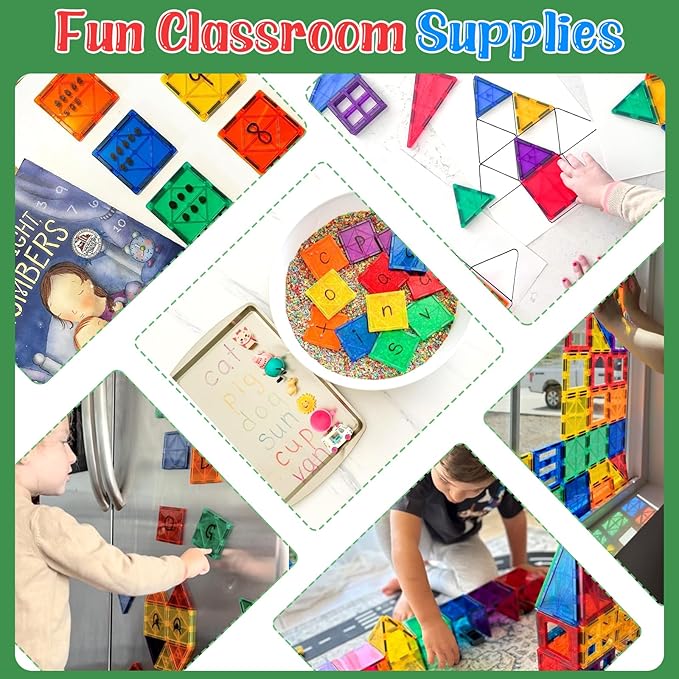 - 【GREAT GIFTS FOR KIDS】Magnetic tiles inspire creativity and imagination, making them a perfect gift for kids at birthday parties, Christmas, or any group play activities at home, in the classroom, or outdoor games. Moreover, They are also very popular with preschool students as school supplies. Kids will be excited about learning and engaging in imaginative play with these entertaining and educational magnetic tiles. Perfect for boys & girls ages 3+.