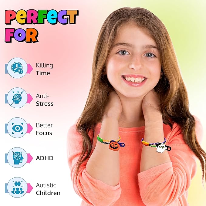 - Halloween Essential Addition: Pair these kids’ Friendship Fidget Zipper Bracelets with other goodies to stand out. Ideal Non-Candy giveaways for your party, these fun-filled fidget toys keep kids amused and anxiety-free.