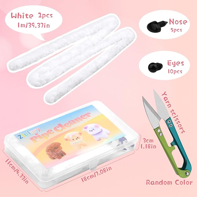 - White Pipe Cleaner: You will get 2 pcs white pipe cleaner, 5 pcs nose, 10 pcs eyes.Simple DIY pipe cleaner tool can help you use your best imagination, suitable for making various types of small animals. You can create your own, or search the web for tutorials.