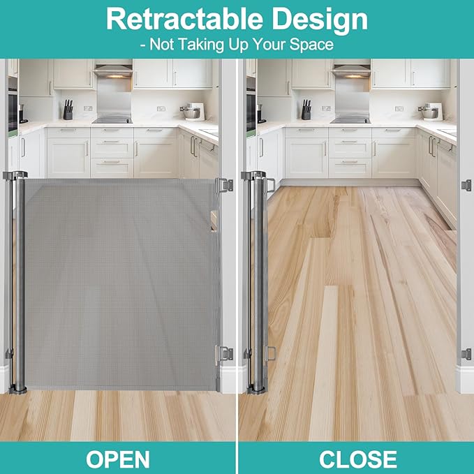 - Retractable & Durable Mesh : mesh can be completely retracted away when not in use. extra tall retractable dog gate is made of durable mesh lining that is tough, durable, soft and scratch-resistant, anti-climb.