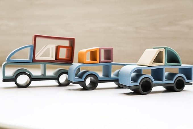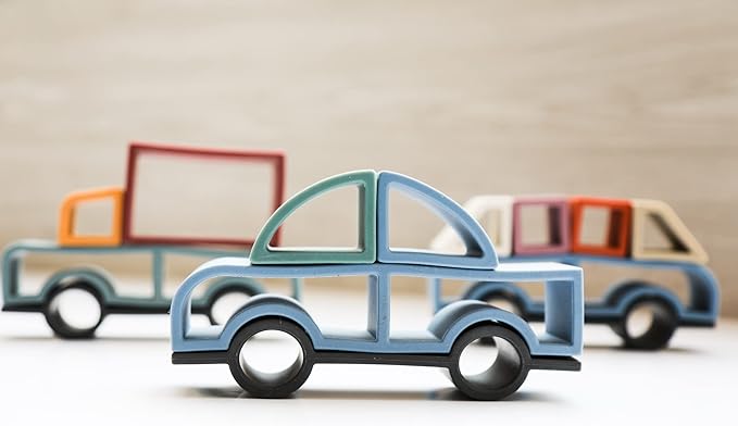 - ๐๐๐๐ & ๐๐จ๐ง-๐ญ๐จ๐ฑ๐ข๐ ๐๐จ๐ฆ๐ฉ๐จ๐ฌ๐ข๐ญ๐ข๐จ๐ง: There are 14 pieces to build a car, a truck, and a van to made from food-grade silicone, which are free from harmful chemicals, ensuring the safety of toddlers and babies during playtime.