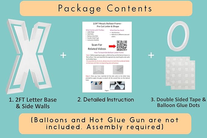 - FAST and EASY ASSEMBLY - Decorate your party like an event balloon artist! Our 2ft mosaic balloon frame letters are pre-cut to the perfect measurements, saving you the hassle of printing, measuring, and cutting templates yourself!