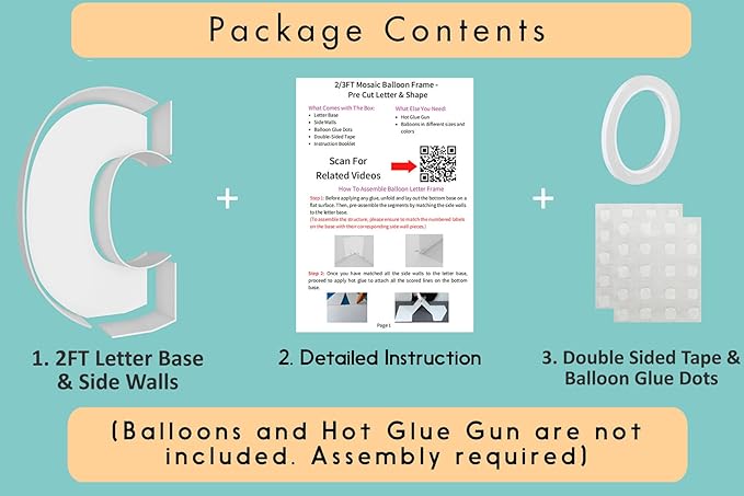 - FAST and EASY ASSEMBLY - Decorate your party like an event balloon artist! Our 2ft mosaic balloon frame letters are pre-cut to the perfect measurements, saving you the hassle of printing, measuring, and cutting templates yourself!