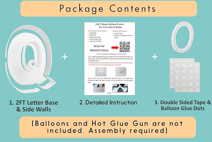 - FAST and EASY ASSEMBLY - Decorate your party like an event balloon artist! Our 2ft mosaic balloon frame letters are pre-cut to the perfect measurements, saving you the hassle of printing, measuring, and cutting templates yourself!