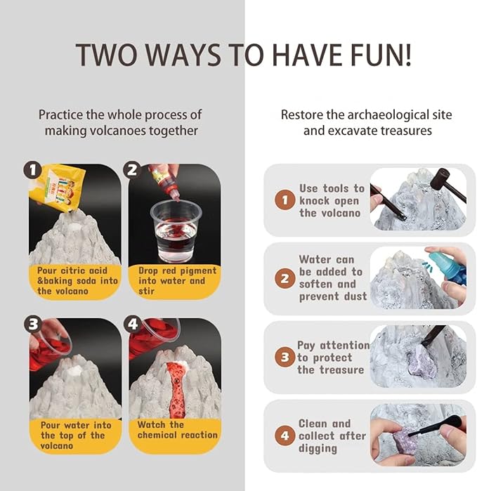 Volcano Kit, Dinosaur Kit,Gem Digging Kit, Volcano Eruption Science Kits, Science STEM Activities Educational for Age 6-8-12, Kid Toys, Birthday Gift