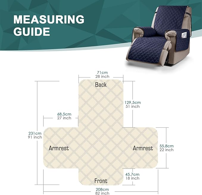 - PERFECT FIT: Great coverage for your recliner, protect your furniture from dirt, daily wear and tear. Fits recliner chairs with a seat width of 28 in. Please measure your chair according to the pictures on the product page