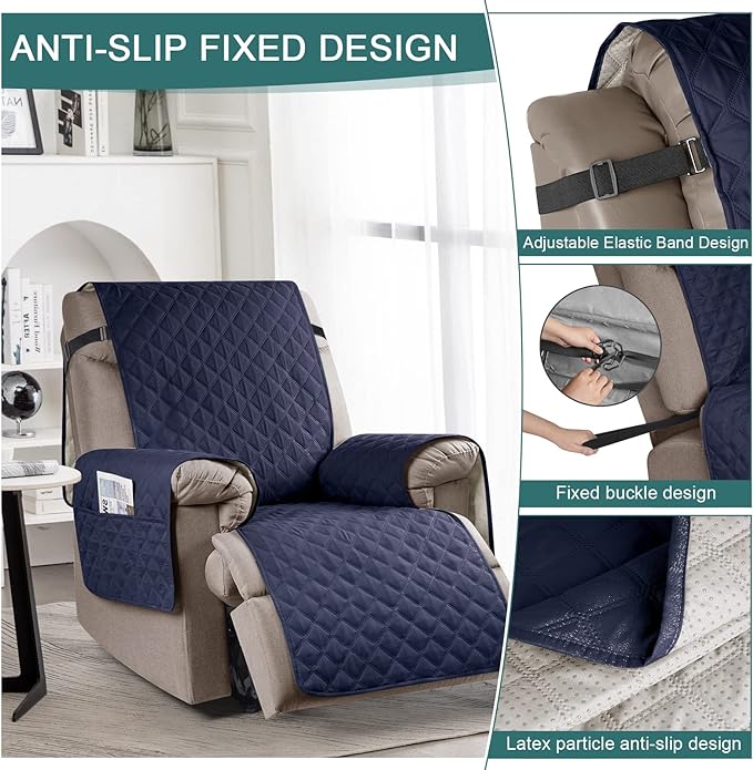 - STAY IN PLACE: Solid round colloid design on the back of our recliner cover to reduce slipping; Elastic straps on the top secure the back of the sofa; Elastic band on the seat with round buckles enhance slip resistance