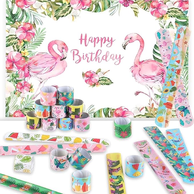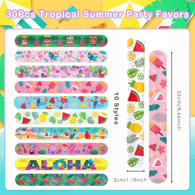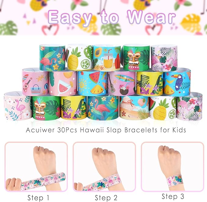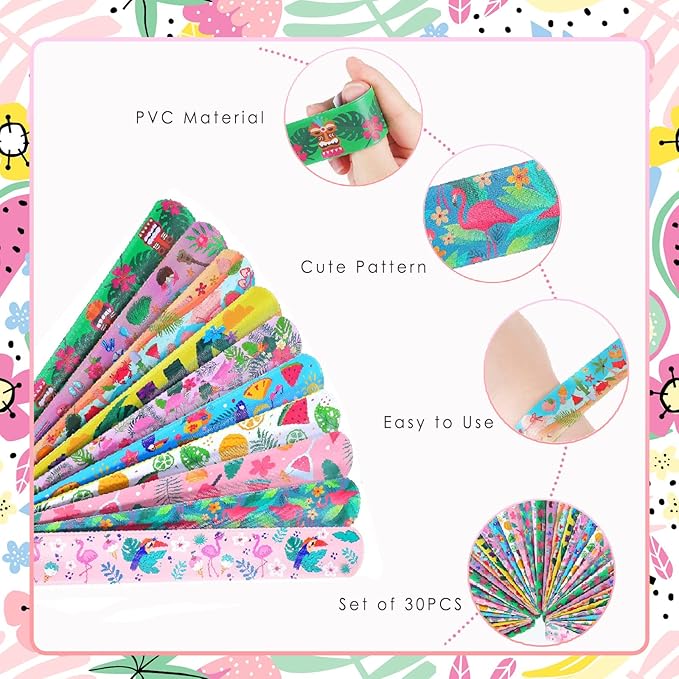 Viicoor 30 PCS Slap Bracelets Pink Hawaii Snap Bracelet Wrisrtband for Party Favors Aloha Bag Filler School Prizes Gifts Party Favors Bulk (8-Hawaii-30PCS)