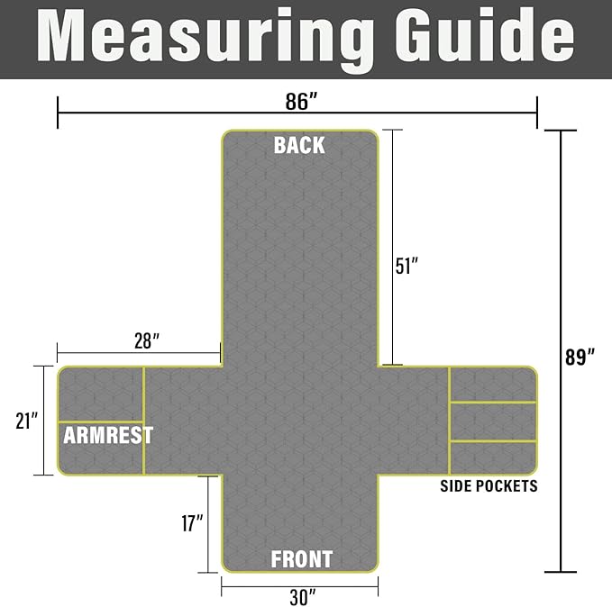 - Handy Pockets: Two bigger side pockets and three smaller side pockets are located on each armrest. They are designed to hold books, glasses, cellphone, or remote controls, magazines and other accessories