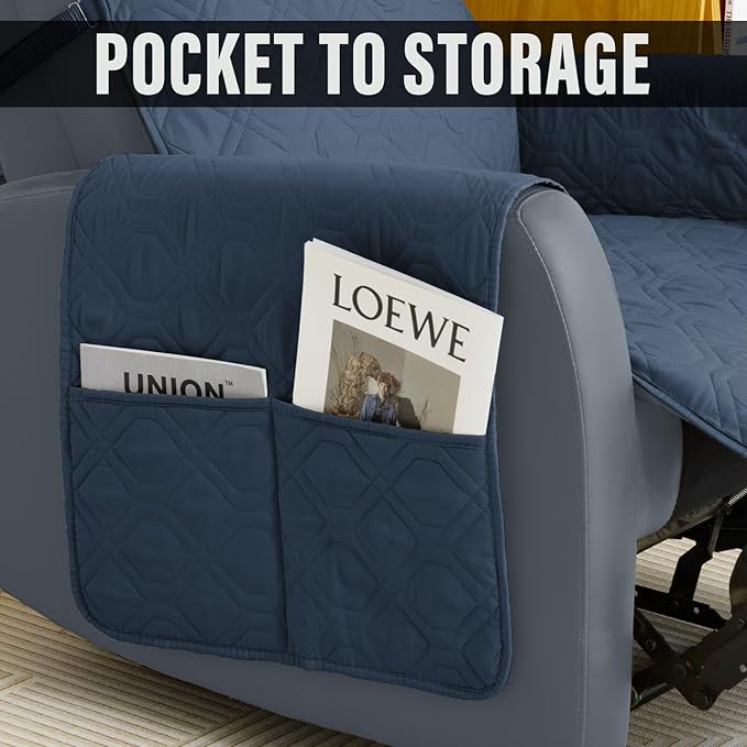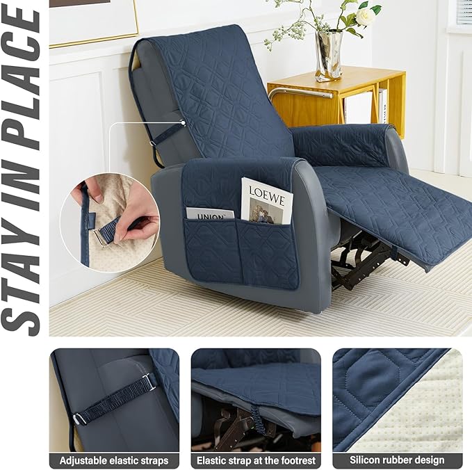 Recliner Chair Cover Sofa Slipcover Non-Slip Chair Couch Cover Machine Washable Furniture Protector with Straps for Dogs(Blue, 23inch Recliner)