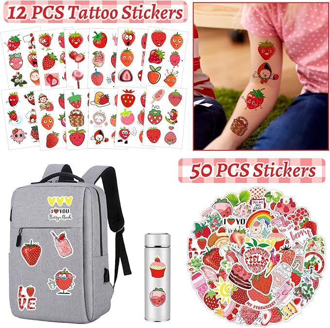 - Novel and Unique Party Supplies: Sweet strawberry first birthday party supplies contains well-designed by the designer slap bracelets and key chains, vivid badge, cute stickers, paper bags, Sealing stickers in various styles and temporary tattoos are sure to stand out at parties